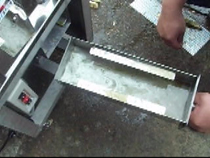 1.前面の丸い口にサトウキビを差し込み、スタートボタンを押します。